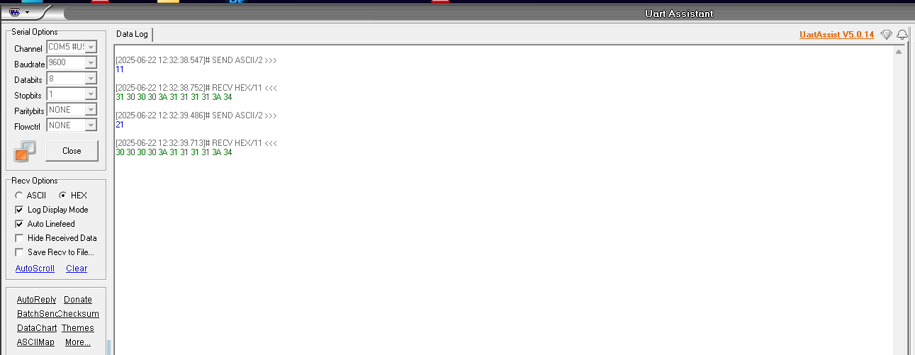 dans UART : HEX (et pas ASCII), dans MyModbus : ASCII et pas RTU → Il faudrait choisir RTU,