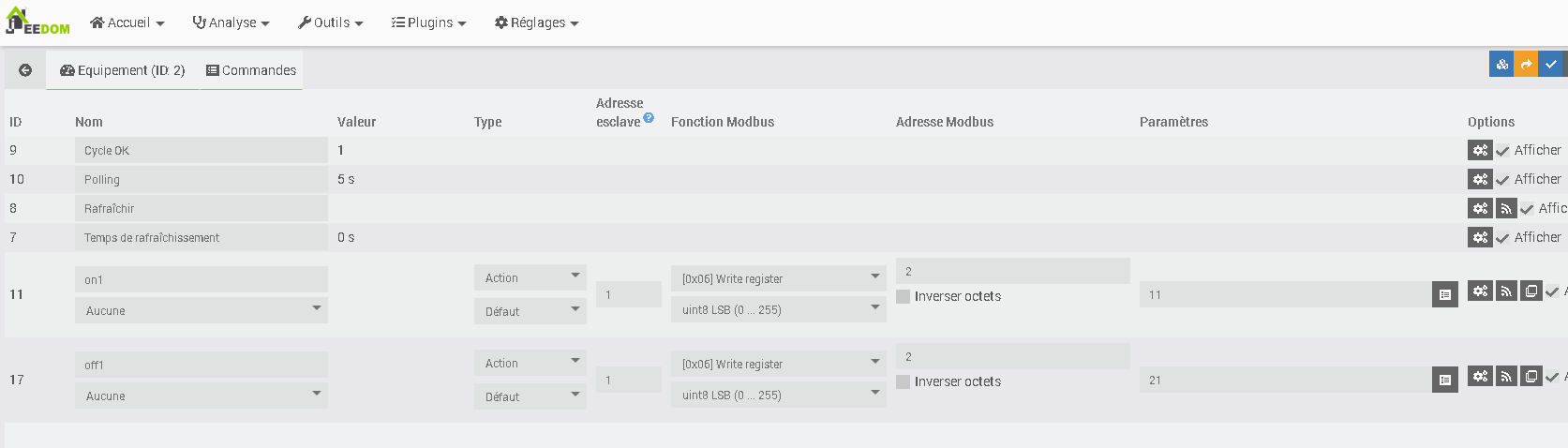 Et une dernière question, j’ai un deuxieme dingtian, si je mets mon bus en serie et que je veux faire pareil sur la deuxieme carte, il me suffit juste de copier les commandes et changer l’esclave ou les commandes registres ne sont pas les memes ?