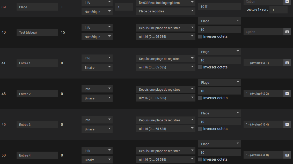 edit : l’étiquette utilisée est la mauvaise, je suis tombé sur ce fil en consultant les derniers messages, il faut utiliser le tag plugin-mymodbus si vous parlez du plugin MyModbus.
