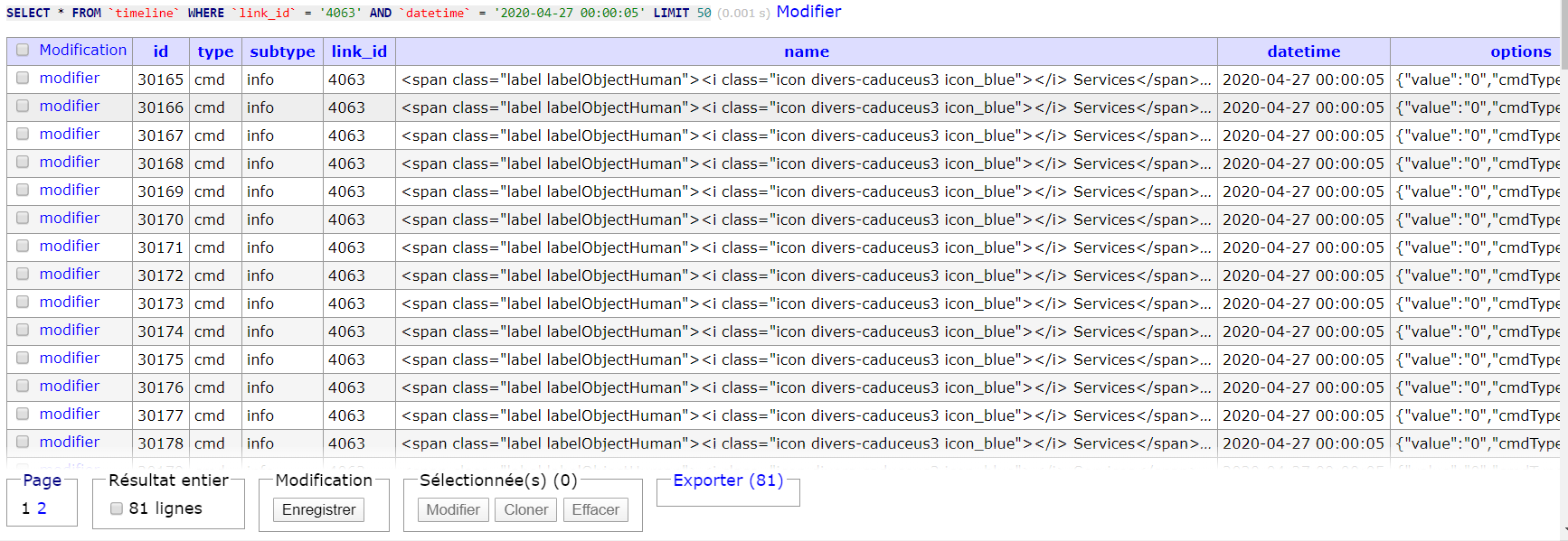 Coté base, il y a plein de répétitions (81x) en fait… ça doit pas aider aux performances