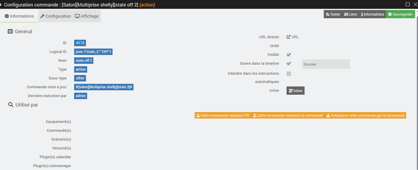 - dans le menu Analyse/Equipements/Actions définies ces commandes n’apparaissent pas non plus dans la colonne Exécution