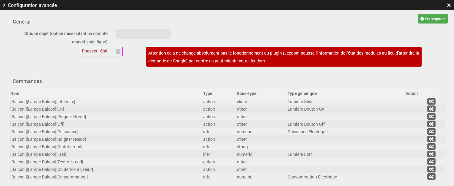 Je l’ai configuré et j’arrive à piloter mes équipements. Quand j’utilise l’appli Google Home les appareils sont correctement pilotés et le changement d’état se fait correctement sur Jeedom, cependant l’inverse ne fonctionne pas. En effet, quand je pilote un équipement sur Jeedom, l’état de celui-ci n’est pas actualisé sur Google Home.