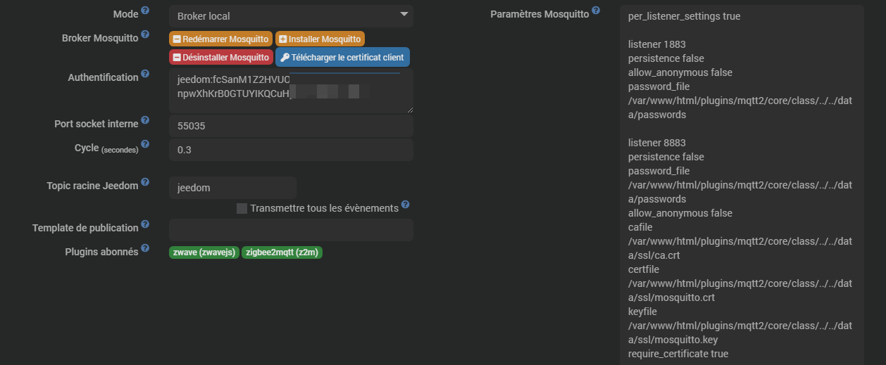 J’ai essai de rétablir le droits des fichiers, de réinstaller mosquitto géré par MQTT Manager de relancer les demons… enfin les trucs que l’on trouve à droite à gauche sur des sujets identiques… ![]()