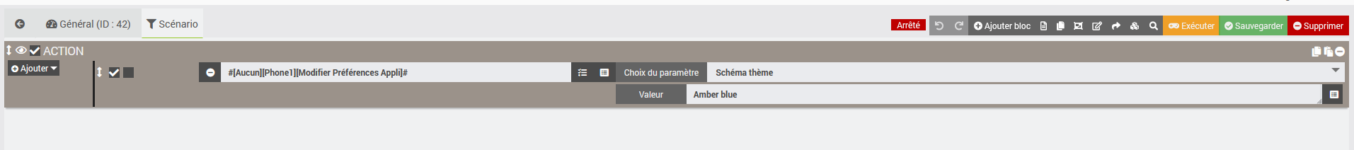 J’essaye de changer le theme d’un device via un scénario en reprenant le nom du théme en commande comme suit: