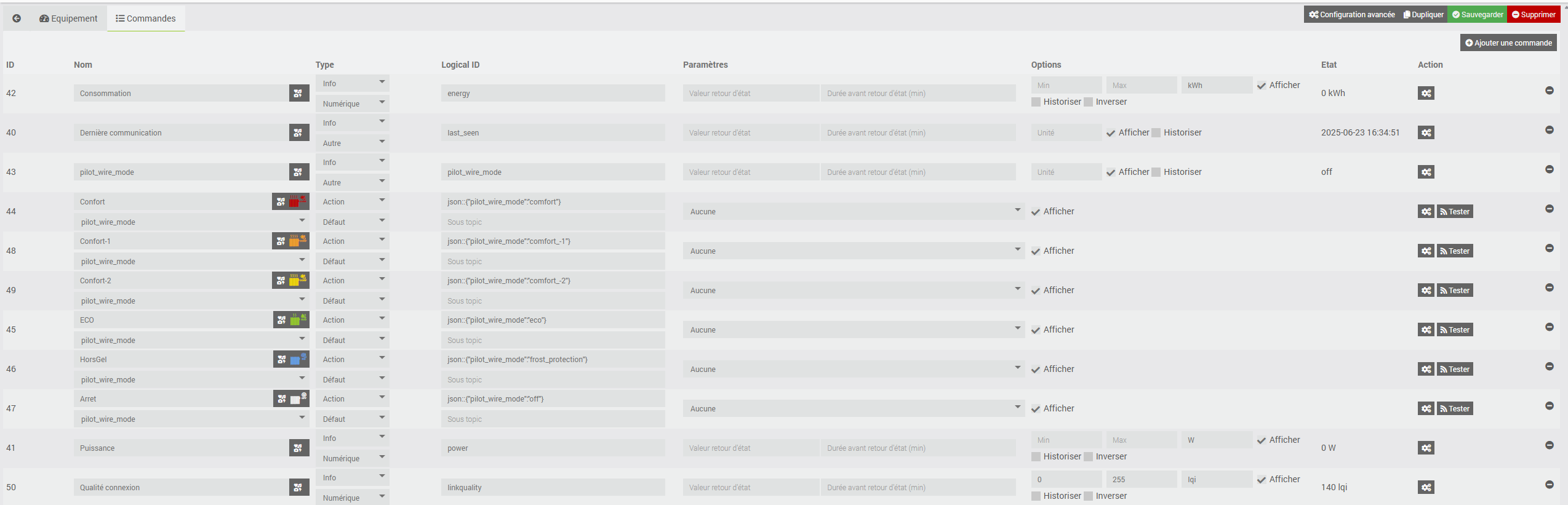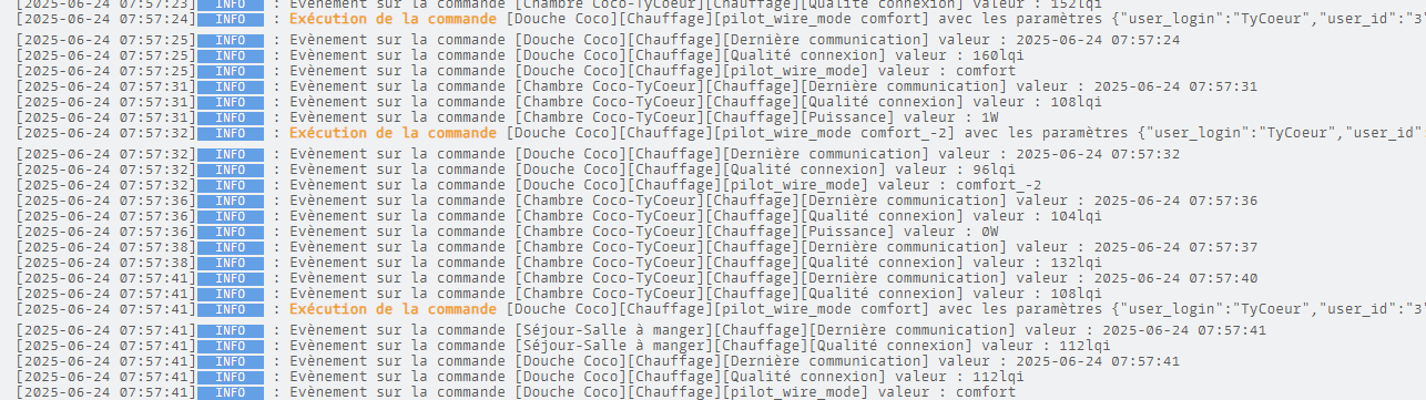 Norbert, si tu regardes les logs partagés plus haut tout fonctionne côté équipement/z2m : les commandes passent bien, le statut renvoyé change bien, mais l’état réel du radiateur ne change pas. C’est pour ça qu’avec Aurel on conseille un scénario ou une « action avant », pour passer par un état transitoire.