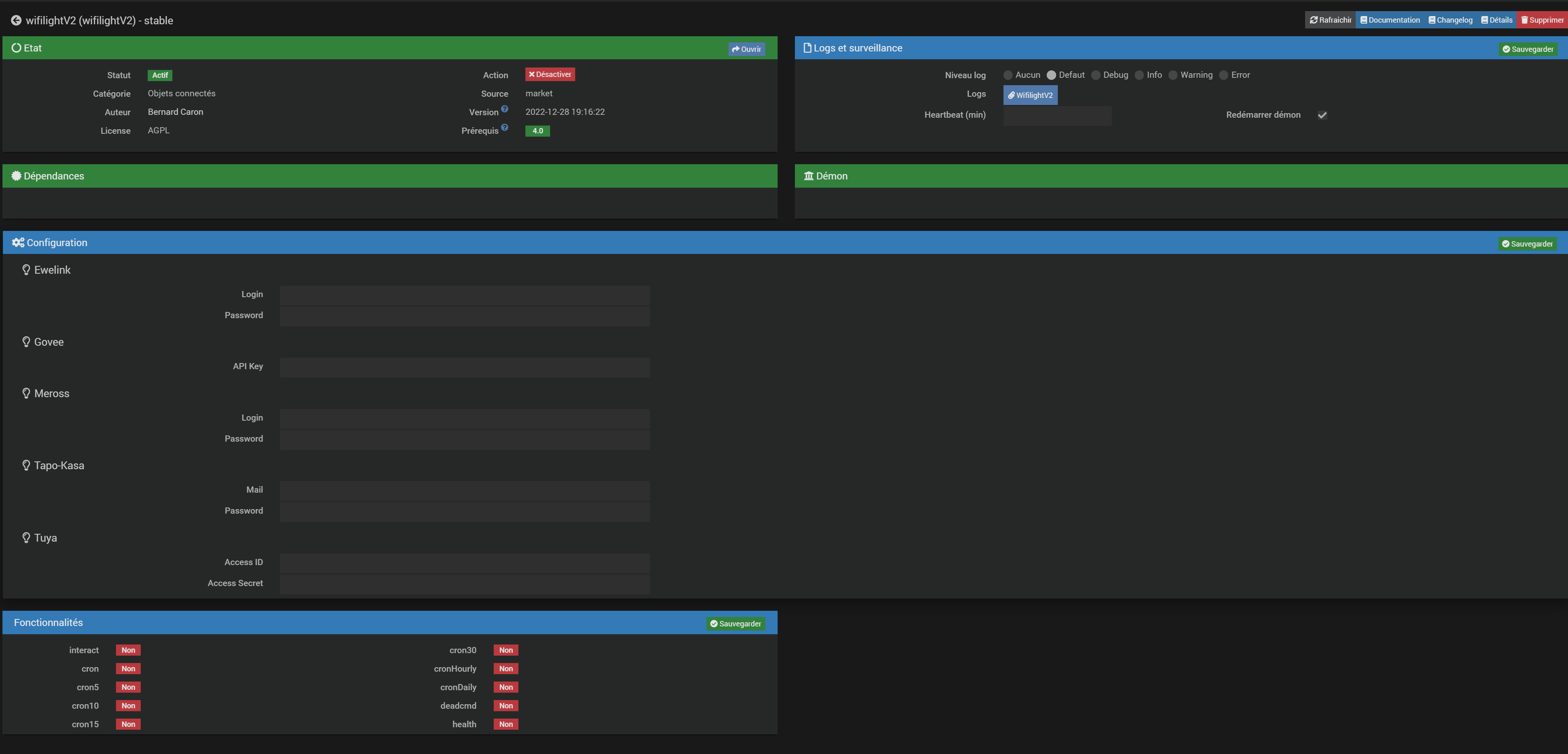 -Aucune info dans les logs -Aucun autre plugin actif -Linux Jeedup avec Jeedom 4.3.14 (stable)