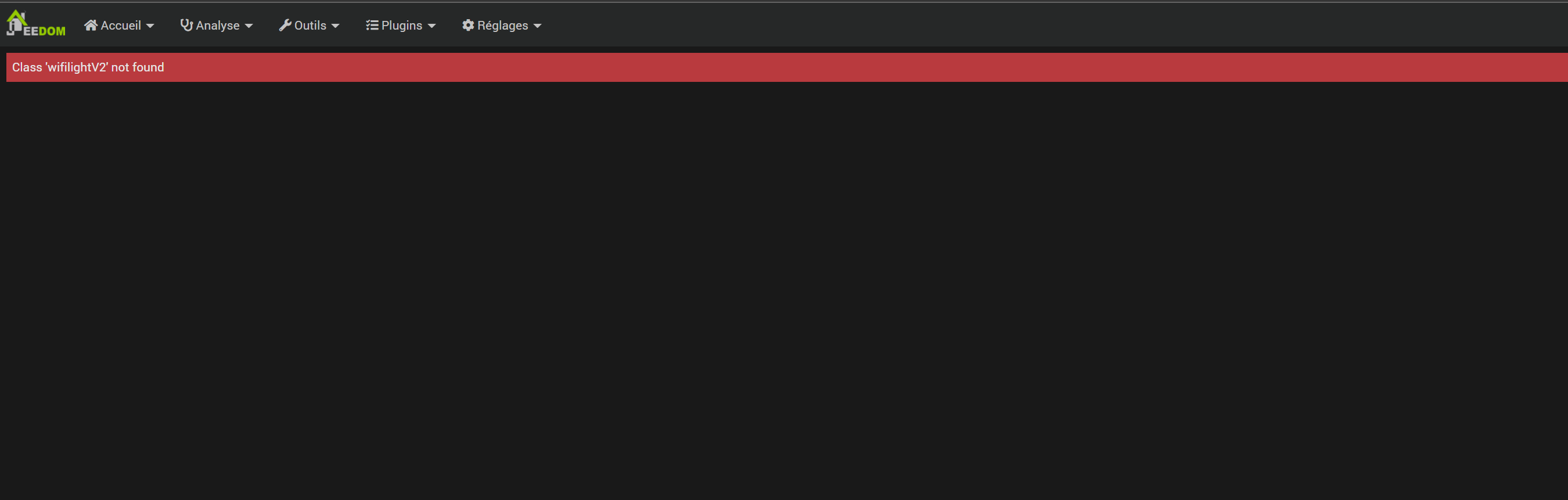En effet après l’installation du plugin Wifilight, au moment de vouloir ajouter mes contrôleurs Wifi Arilux RGBW le message « Class 'wifilightV2’ not found » m’empêche d’avancer plus loin.