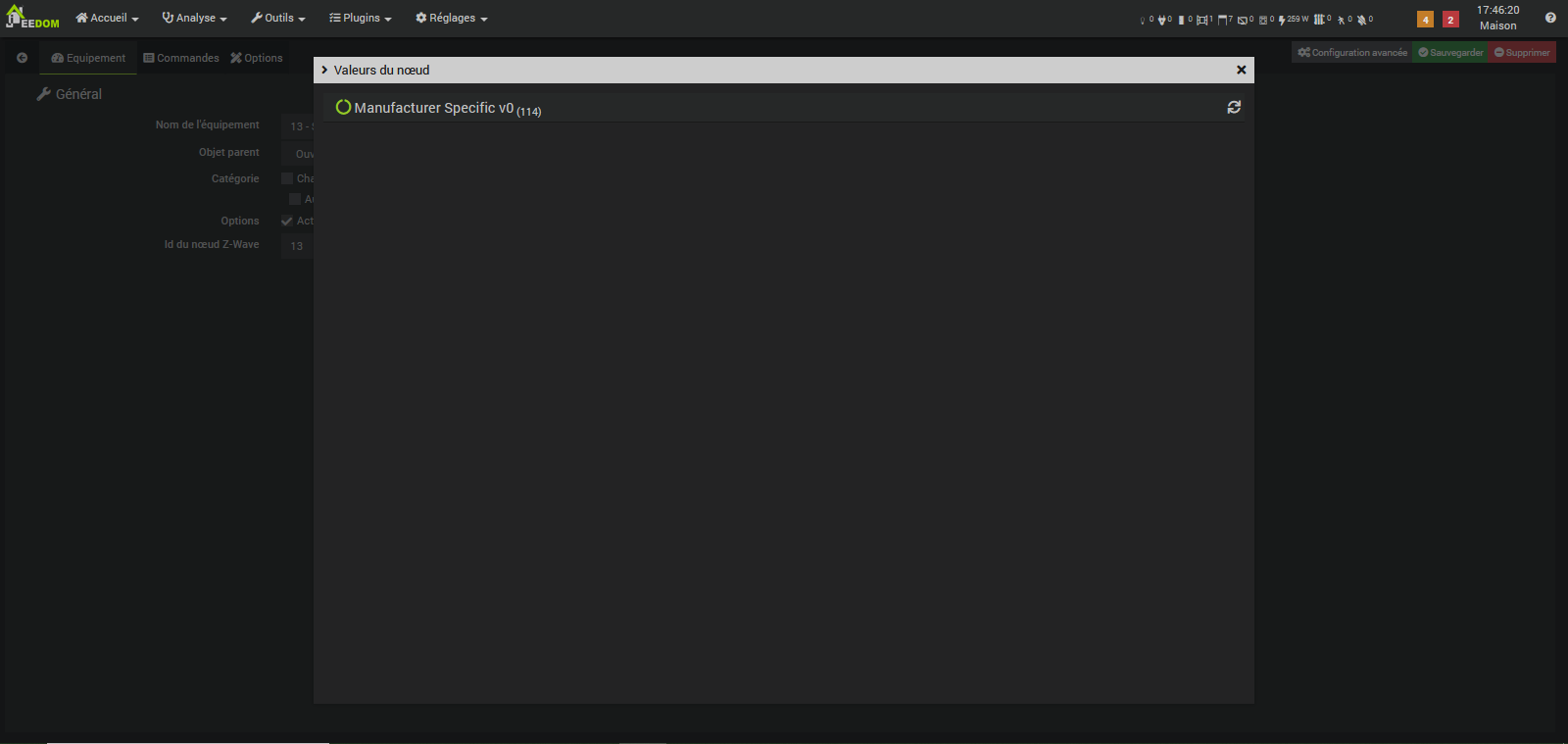 [2025-01-28 20:10:04] DEBUG : [createEqLogic] Création d\'un équipement {"id":24,"inited":false,"status":4,"isControllerNode":false,"interviewStage":2,"deviceClass":{"basic":"Routing End Node","generic":"Entry Control","specific":"Door Lock"},"ready":false,"isListening":true,"isFrequentListening":false,"canSleep":false,"isRouting":true,"supportedDataRates":[40000,100000],"maxDataRate":100000,"supportsSecurity":false,"isSecure":false,"supportsBeaming":true,"protocolVersion":3,"manufacturer":"Unknown manufacturer 0xXXXX","productDescription":"0xXXXX","productLabel":"Unknown product 0xXXXX","keepAwake":false,"protocol":0}