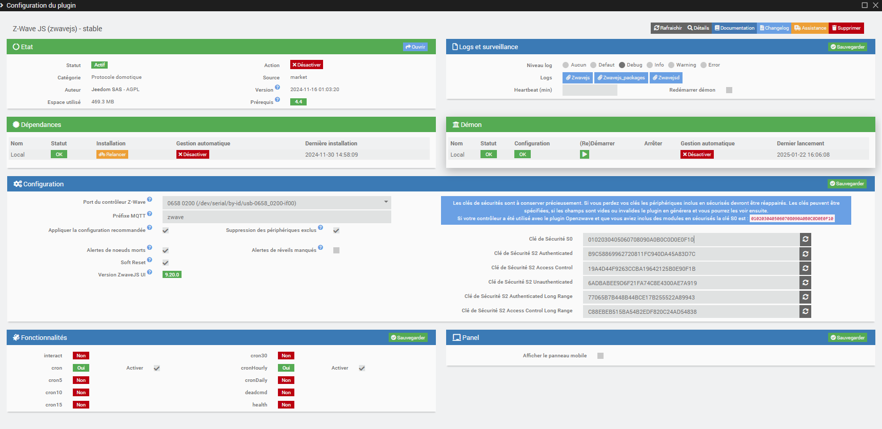 [2025-01-28 20:10:06] DEBUG : [createEqLogic] Création d\'un équipement {"id":24,"inited":false,"status":4,"isControllerNode":false,"interviewStage":5,"deviceClass":{"basic":"Routing End Node","generic":"Entry Control","specific":"Door Lock"},"zwavePlusVersion":1,"ready":false,"zwavePlusRoleType":7,"isListening":true,"isFrequentListening":false,"canSleep":false,"isRouting":true,"supportedDataRates":[40000,100000],"maxDataRate":100000,"supportsSecurity":false,"isSecure":false,"supportsBeaming":true,"protocolVersion":3,"firmwareVersion":"2.16","manufacturerId":540,"manufacturer":"Unknown manufacturer 0xXXXX","productId":4097,"productDescription":"0xXXXX","productType":20496,"productLabel":"Unknown product 0xXXXX","deviceDatabaseUrl":"https:\/\/devices.zwave-js.io\/?jumpTo=0x021c:0x5010:0x1001:2.16","keepAwake":false,"protocol":0}