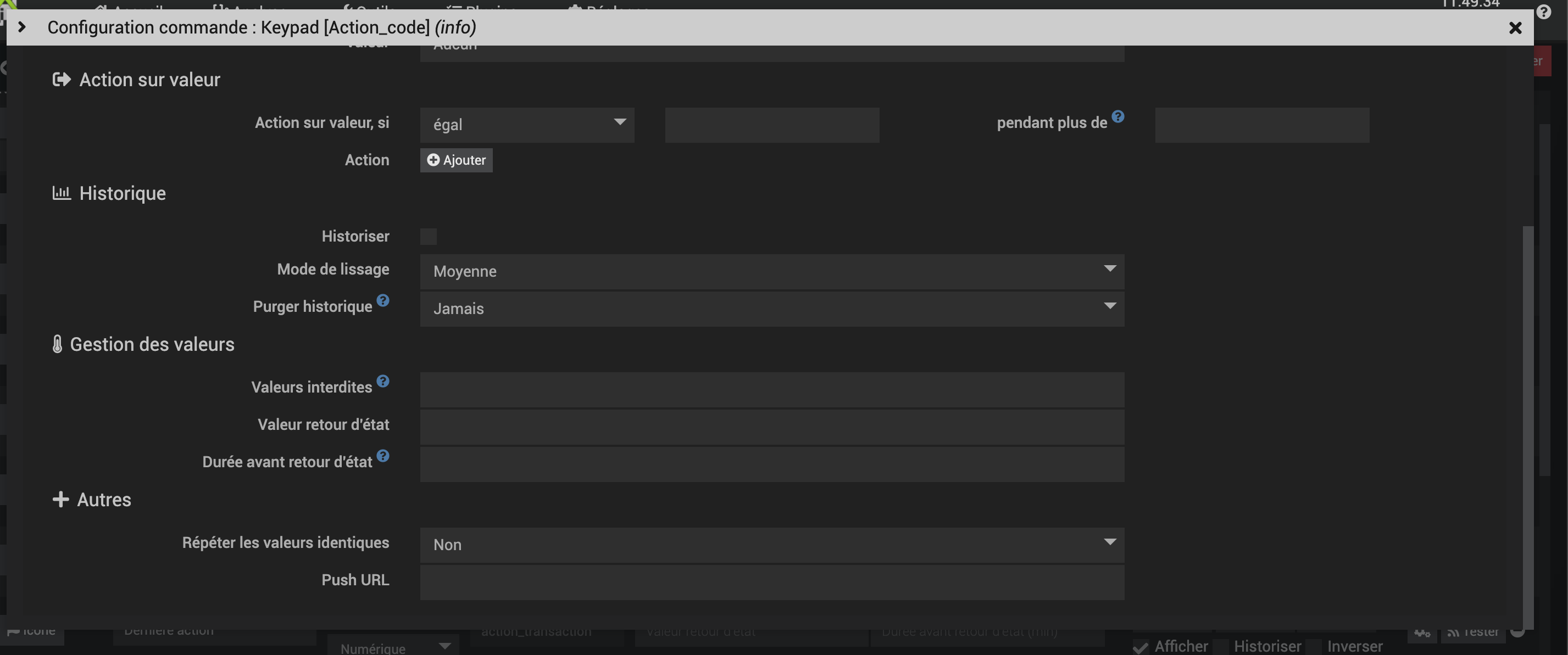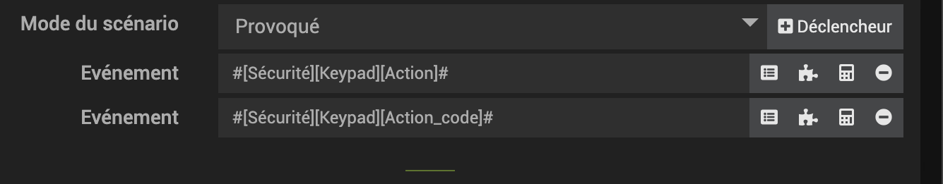 Alors, je pense que tu peut de dispenser de « [Securite][Keypad][Action_code] » dans le déclencheur, ensuite je soupçonne soit le plugin, soit l’équipement en lui même qui répète l’information.