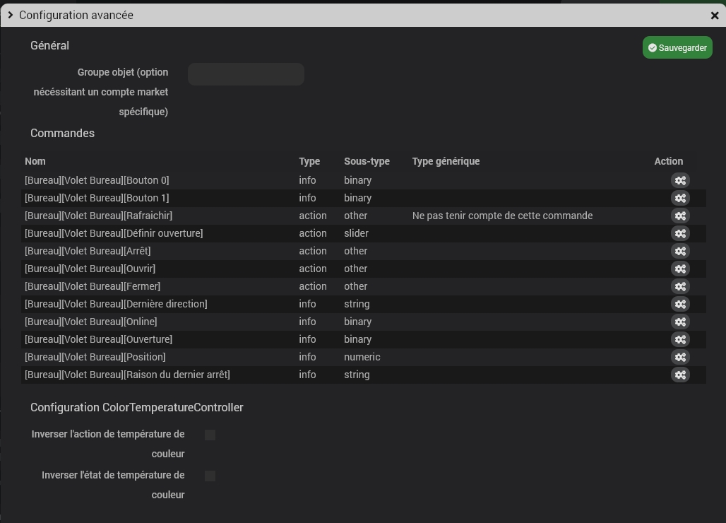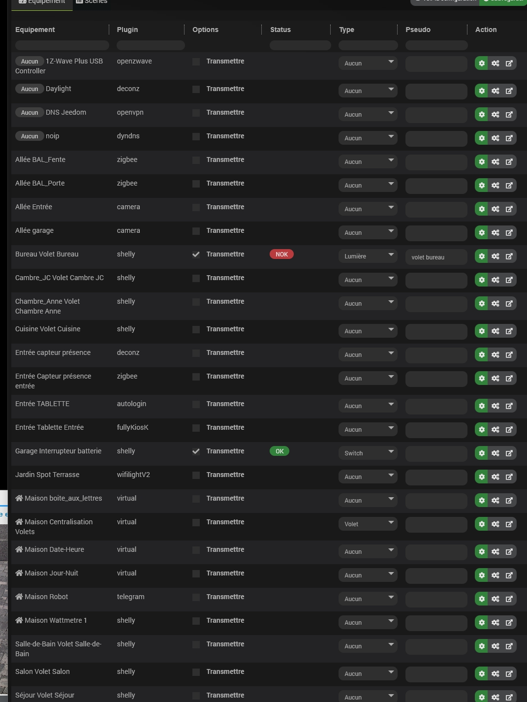 Si je transmet un interrupteur simple « garage interrupteur batterie » il se met bien en OK et est bien commandé vocalement… Mais « bureau volet bureau » reste en NOK malgré avoir testé type lumière, switch…