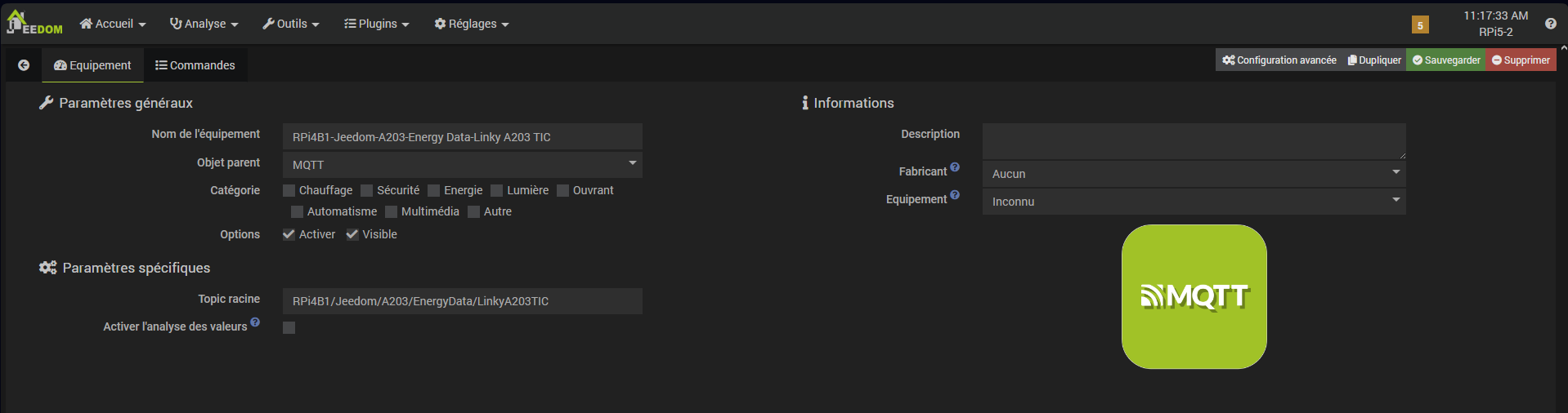Dans les logs en Debug, je vois bien remonter le trafic MQTT et cette info en particulier.