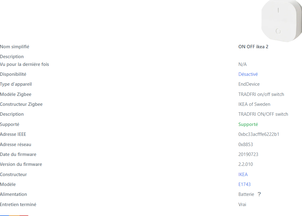 Je viens de réinclure un interrupteur IKEA (Plus de batterie)