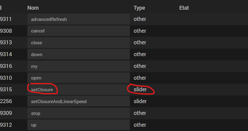 J’ai répondu a ta question … avec une commande de type curseur … par exemple sur un volet roulant velux le setClosure fera l’affaire