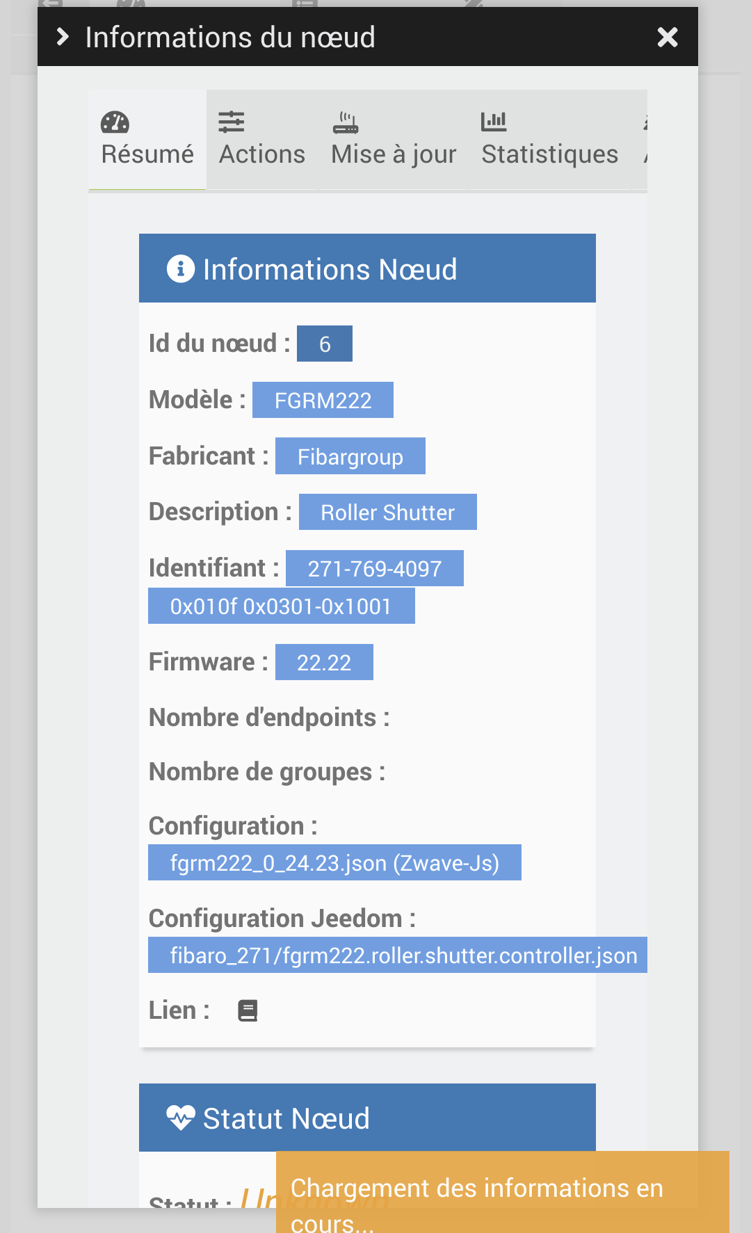 J’ai tenté les actions disponibles dans la config zwave-js (interroger le noeud, réparer, ping,etc…) dans succès.