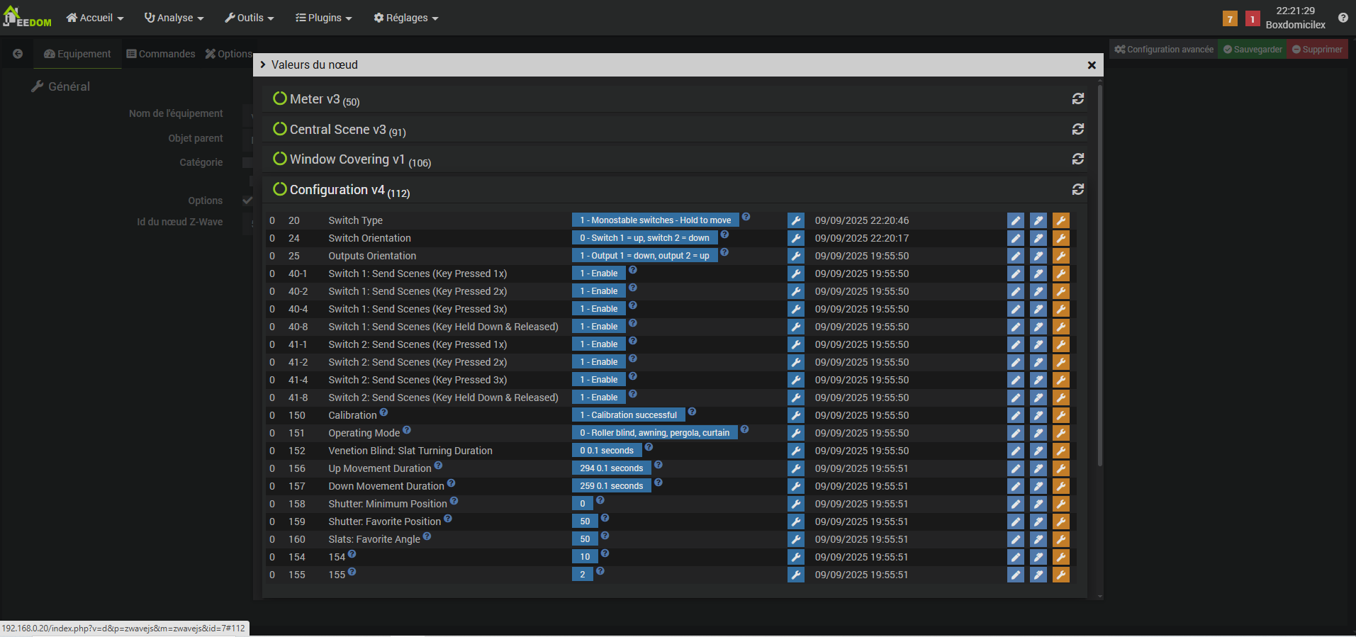 Version 10.5.1 de zwave js ui par suite à relance des dépendances. L’équipe Jeedom est intervenu à distance et les commandes haut, bas, positionnement + état % fonctionnent. Merci à la team.