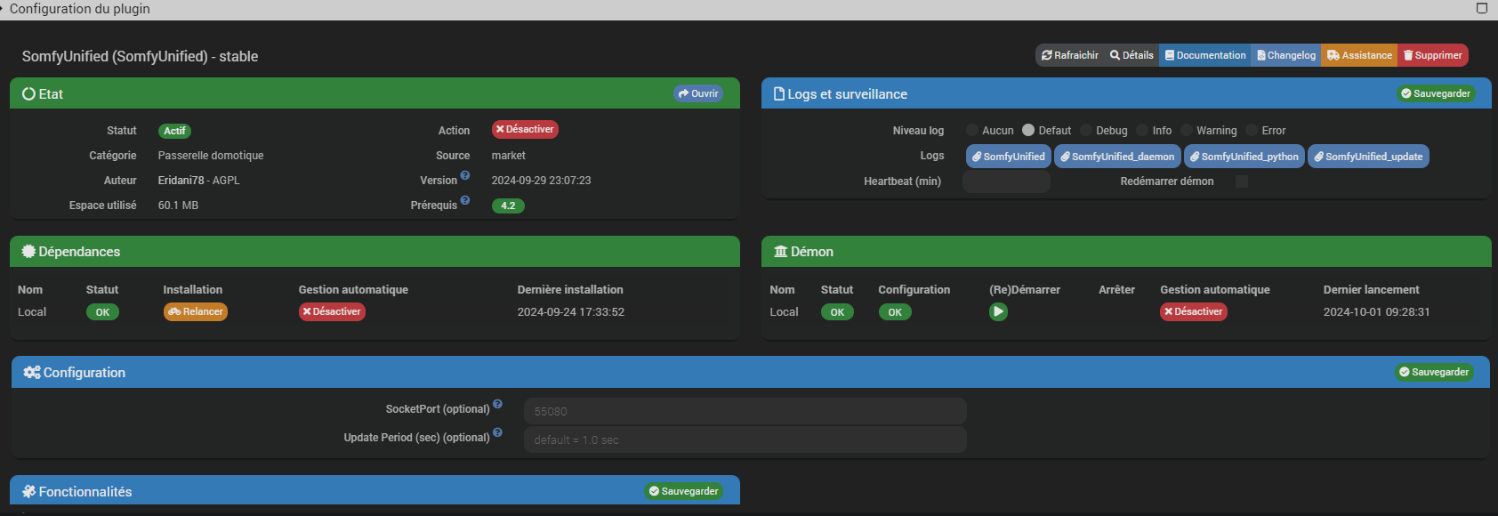 Bonjour, depuis peu je suis passer sur le plugin SomfyUnified (car il me permet de relier d’autres accessoire), sauf que j’ai un soucis complètement incompréhensible.
