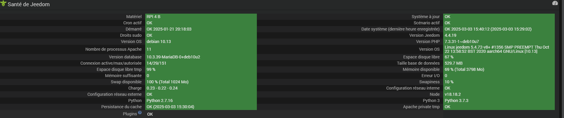 - fournir page santé jeedom