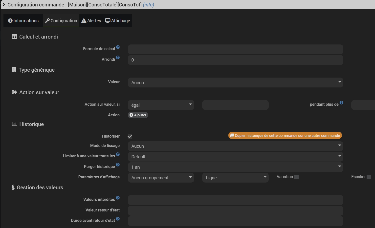 « ConsoTot » est la commande d’un Virtuel paramétré comme ceci :