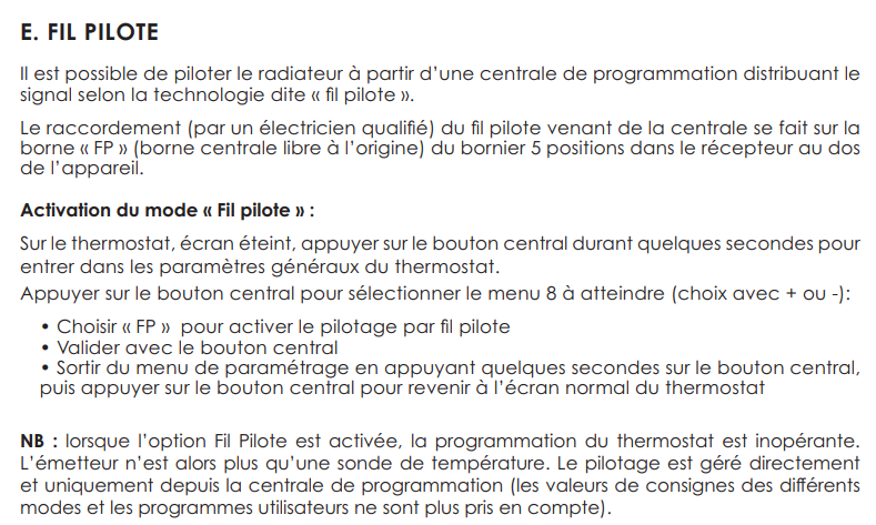 Les commandes du fil pilote pour la mise en marche et l’arrêt ont l’air correctes aussi.