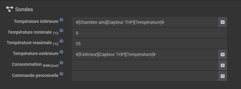Quel est le référentiel de température ambiante de la pièce, et extérieur (configurés dans la partie ‹ sonde › du plugin thermostat ?