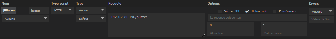 J’ai un scenario qui déclenche le clignotement d’un Yeelight (via enchaînement) et un script qui envoie une requête HTTP pour déclencher un buzzer (sur un ESP8266).