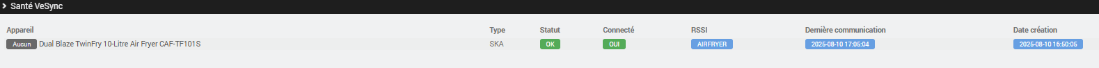 [2025-08-11 21:40:05] DEBUG : createEquipement début{"logicDeviceType":1,"virDeviceType":0,"isOwner":true,"shareType":"1","cid":"vssk462ee2b415ba51efd54fba8ceba0","uuid":"f446aa18-f97c-4513-9b83-261143c27698","macID":"c0:5d:89:cd:9c:22","subDeviceNo":0,"subDeviceType":null,"deviceName":"Dual Blaze TwinFry 10-Litre Air Fryer","deviceImg":"https:\/\/image.vesync.com\/defaultImages\/user\/TF101S_AEU.png","configModule":"VS_WFBO_APR_CAF-TF101S_EU_ONL","deviceRegion":"EU","type":"SKA","deviceType":"CAF-TF101S","authKey":null,"connectionType":"WiFi+BTOnboarding+BTNotify","currentFirmVersion":null,"createTime":1746095438,"timestampMs":null,"solutionType":null,"sharedPeople":[],"subDeviceList":null,"deviceStatus":"off","connectionStatus":"online","mode":null,"speed":null,"mcuVersion":null,"extension":null,"deviceProp":null}