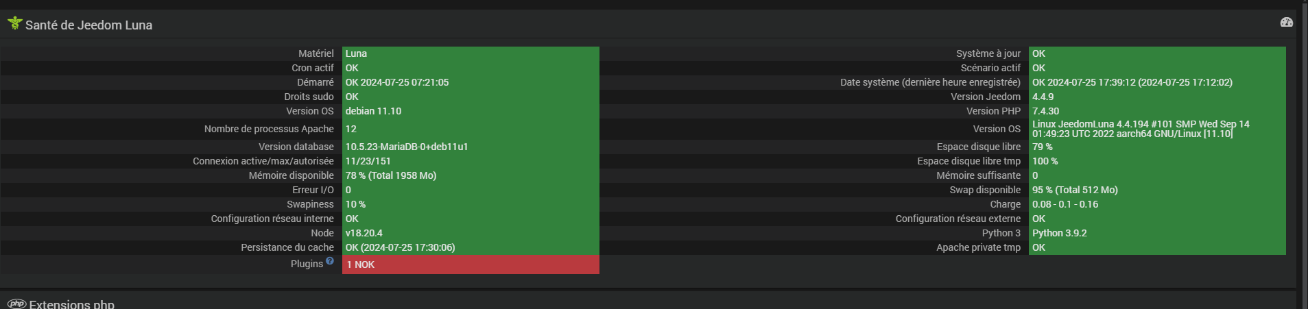 Maintenant j’ai bien le STATUT : ONLINE quand il est branché et le STATUT : COMMLOST quand il est débranché.