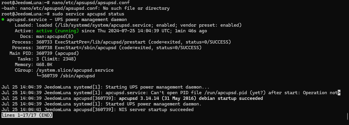 J’ai donc effectué vérifier les informations suivantes dans le fichier : apcupsd.conf