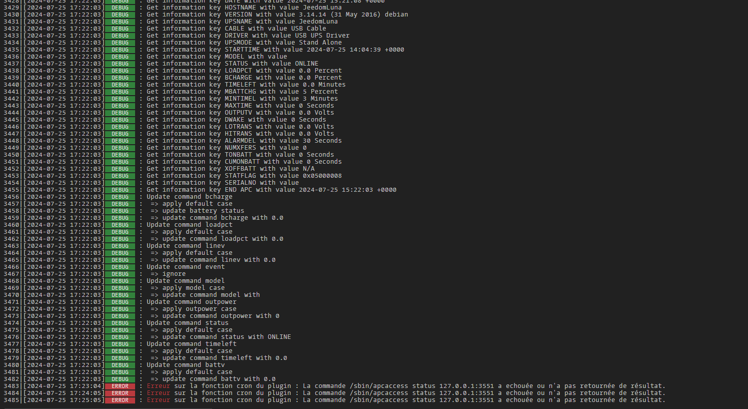Je viens vers vous car depuis quelques jours je peine à faire fonctionner mon onduleur EATON ELIPSE ECO 650 avec le plugin APC de Jeedom.