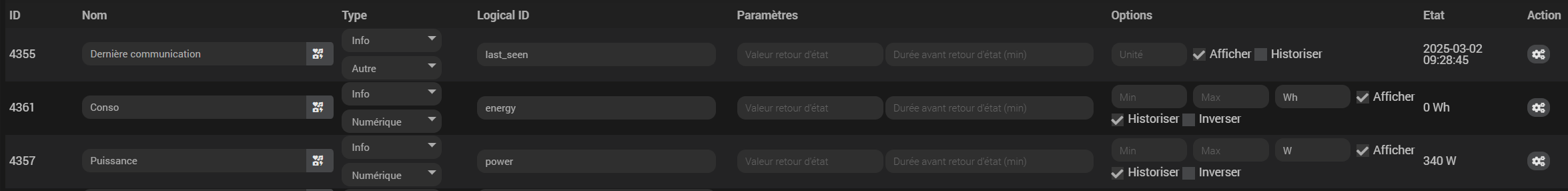 EDIT : les équipements et les commandes de cette prise et l’autre qui ne fonctionne pas, je suis pratiquement certain qu’ils ont été modifiés par « Remplace ». Pour les autres prises je n’ai pas utilisé les possibilités de mise à jour des paramètres des équipements et des commandes proposées par "Remplacer’