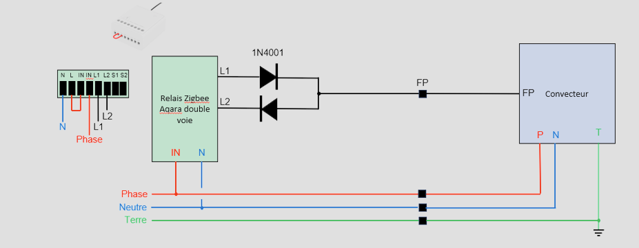 A noter que la gestion d’un fil pilote ne nécessite aucune puissance : donc pas de chauffe des composants, et quasiment aucun risque. Il ne circule que quelques milliampères, mais la tension reste sur du 220v par contre.
