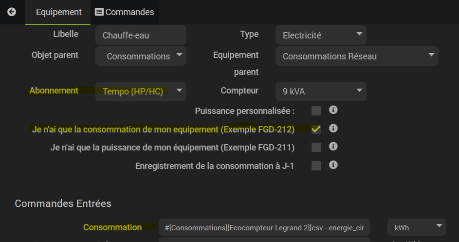 Je commence à installer plusieurs sondes de consommation d’énergie et je suis donc en train de créer des équipements enfant à mon équipement EDF Tempo.