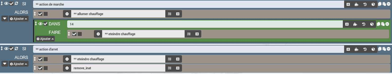Le scénario programme un « sous scénario » dans 14 minutes pour programmer l’arret