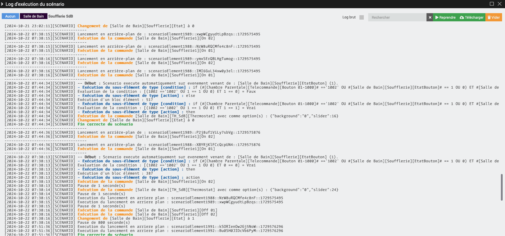 Pourquoi tu as coché l’exécution en parallèle sur certaines actions ? (les deux cases d’une même ligne cochée). Autant dans certains cas ça peut avoir un sens, autant la si le même équipement se mange 2 commandes pile en même temps je ne sais pas comment il va réagir et si il va bien prendre en compte les deux.
