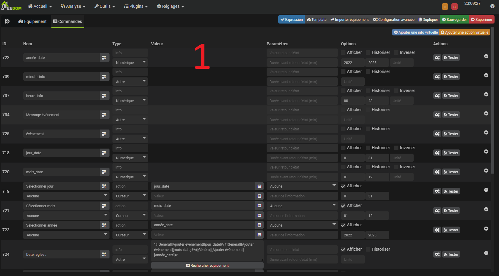 Par exemple l’évent 1 déclenchera TEL EQUIPEMENT lorsque la date est défini en faisant