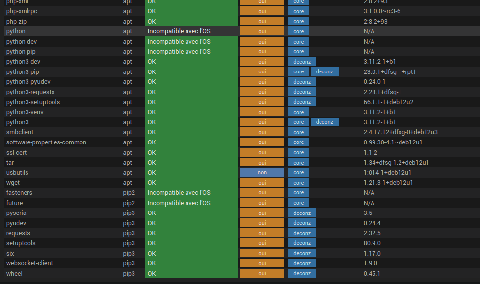 A toutes fins utiles ma configuration (RPI4 debian 12, 64 bit Lite, Jeedom 4.5) :