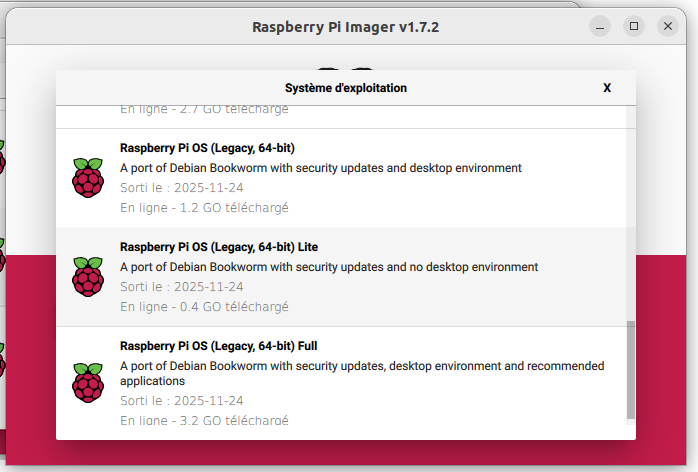 Bon…alors même avec Bookworm 12 64 Bit (raspberry pi 3B) et bien j’en suis au même point…