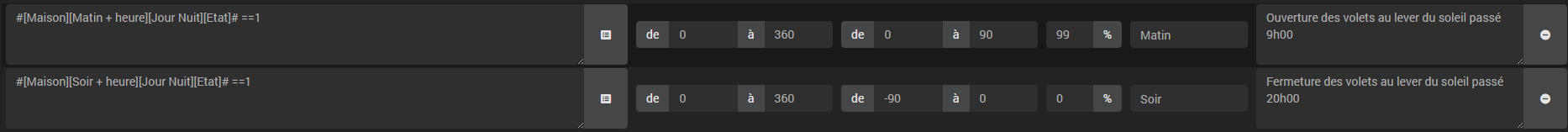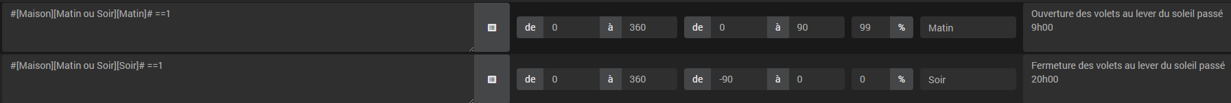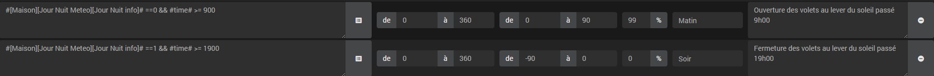 J’avais également essayé les conditions en direct dans le plugin sunshutter mais sans succès, peut être ai-je commis des erreurs d’où ma question en début de post. Je retenterais prochainement. J’ai pour but de joué avec des condition de température également pour les beaux jours.