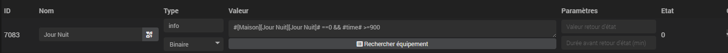 Maintenant au vu de l’autre post, il est fort possible que le plugin ne gère pas plusieurs conditions successives. Dans ce cas il faudra en effet passer par une commande virtuelle pour par exemple obtenir un état binaire 0 ou 1 et l’utiliser coté plugin