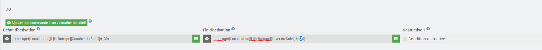Et je n’ai aucune erreur lorsque je paramètre seulement #[CoucherSoleil]# dans la condition lever ou coucher