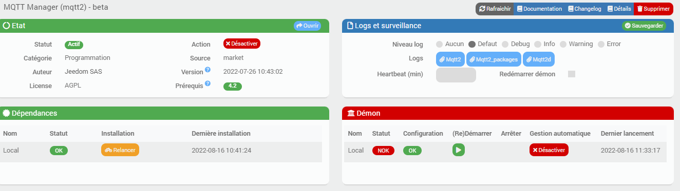 j’ai tenté de réinstaller le plugin, relancer les dépendances, reinstaller mosquito, relancer le demon mais rien n’y fait.