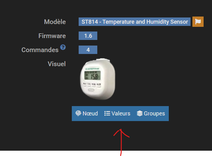 quand tu as des appareils avec des commandes qui ne fonctionnent pas ou qui n’ont pas été créées tu vas dans la configuration de ton équipement et tu cliques sur « valeurs », par exemple mon ST814: