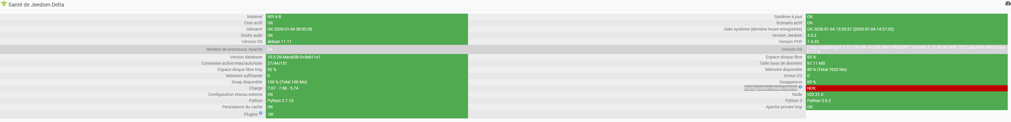 En y regardant de plus prêt, la page santé de Jeedom me dit qu’effectivement j’ai un soucis avec ma configuration réseau interne: