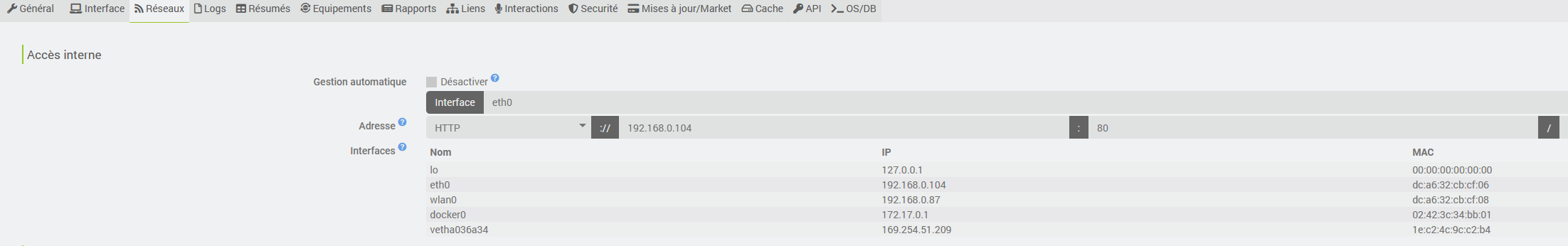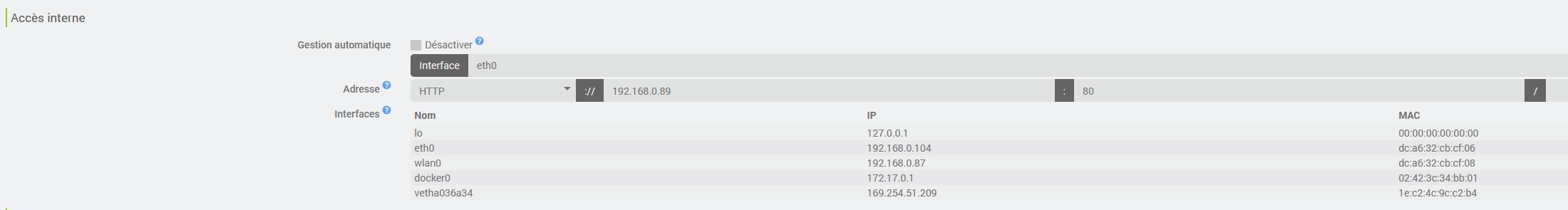 Mon soucis est que j’ai beau changer dans la page Configuration ==> Réseaux ==> Accès interne l’adresse IP en remplaçant l’ancienne par la nouvelle (celle du RPi 4):