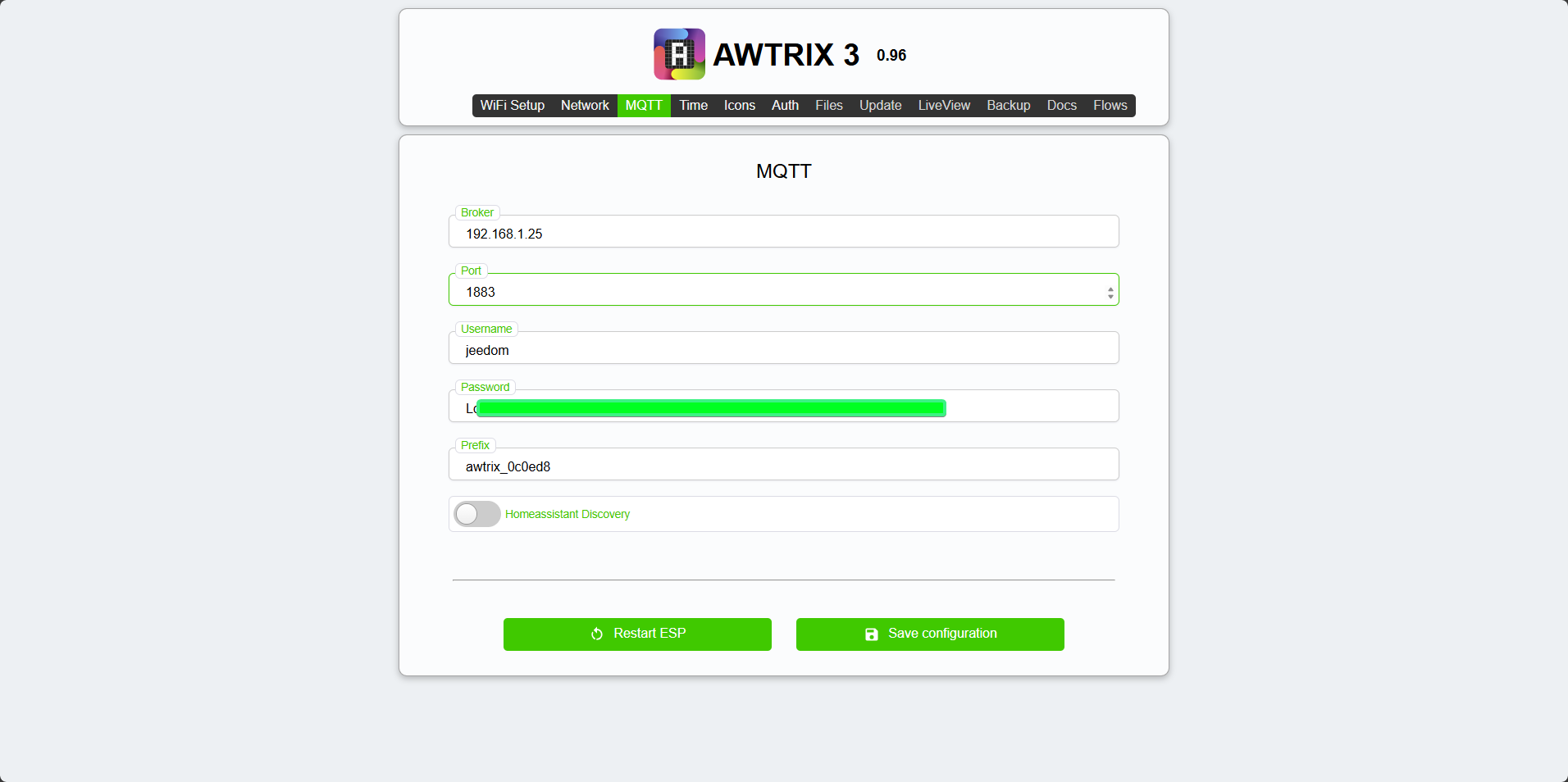 Il est bien flashé en awtrix 3.0, mais impossible d’avoir les montés d’info sous jmqtt.