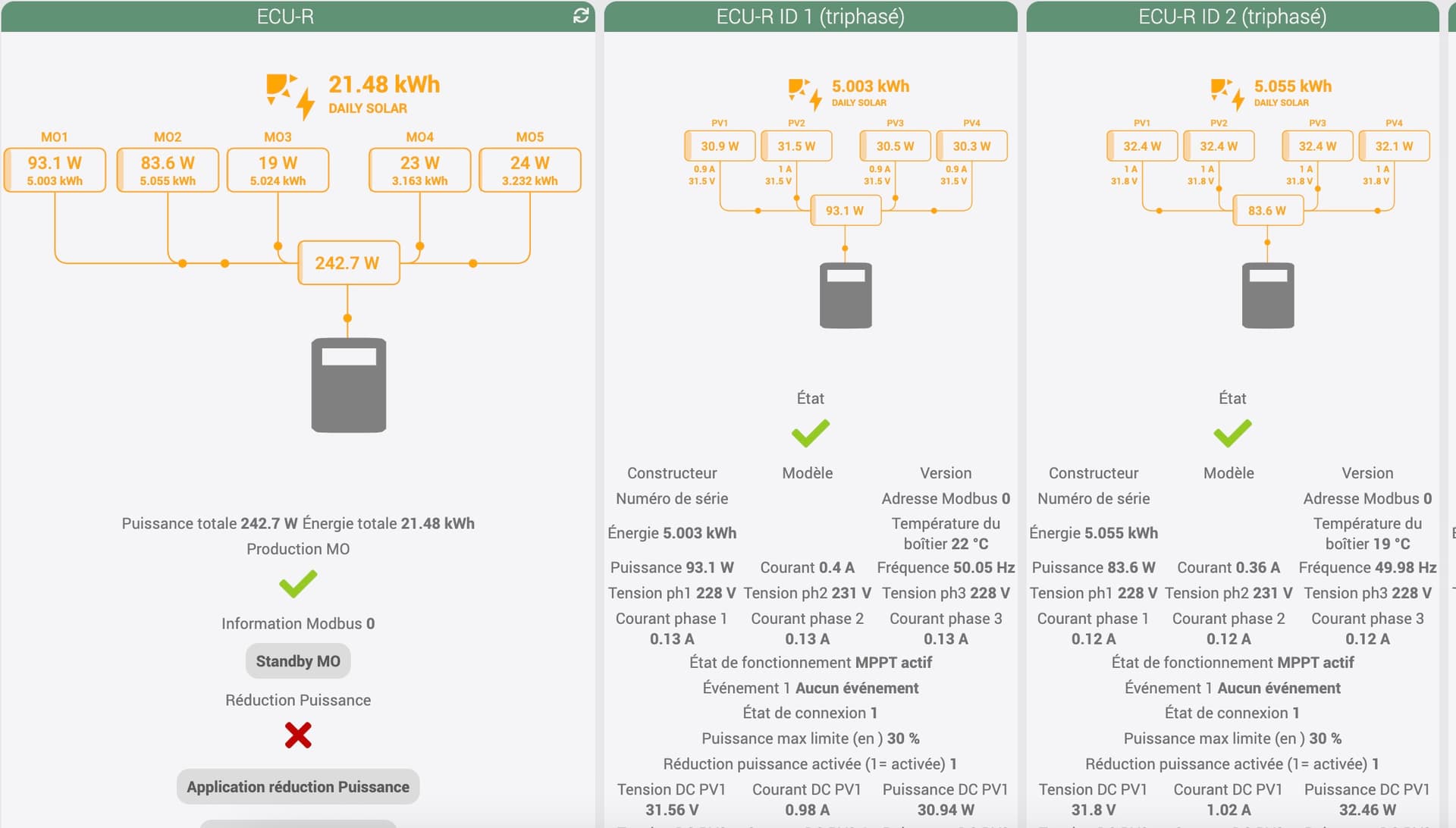 Juste à te connecter à ton ECU à aller dans le bon menu, à cocher la case modbus, à donner un Id à chaque MO et ensuite installer le plugin et à cliquer sur Ajouter un Onduleur, mettre l’IP de ton ECU et ça roule tout seul.