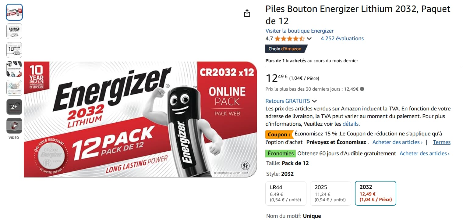 De plus, le comparatif me perturbe aussi avec le prix, présentant les piles Energizer à 3.5€ pièces, alors que par 12 sur Amazon, c’est 1.04€ pièce !