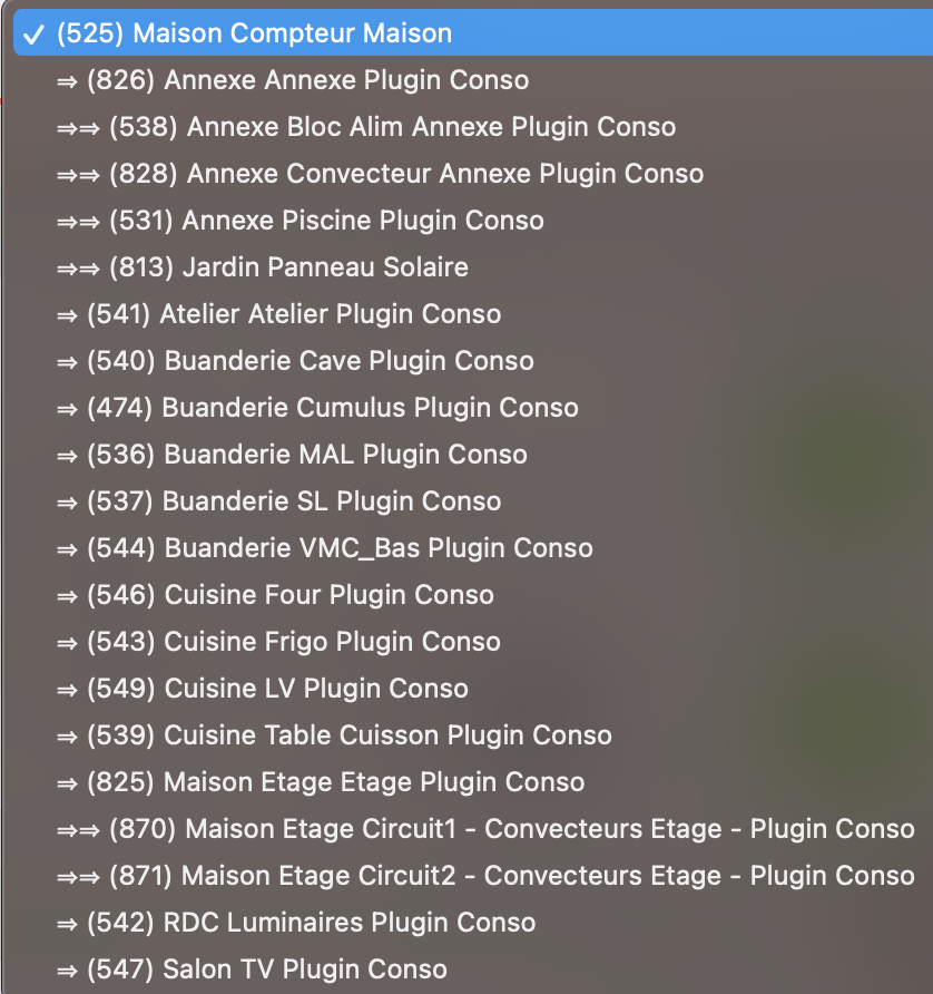 soit on indique une arborescence : compteur / sous-compteurs et on perd dans ce cas les « tags » des différents appareils pour les sous-compteurs