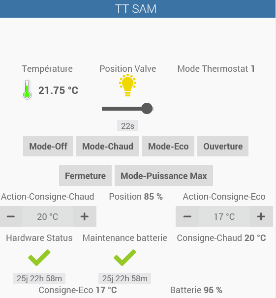 La commande créée de base (le slider pour l’ouverture de la vanne ne fonctionne pas). J’ai bien les retours en pourcentage mais aucun bruit.